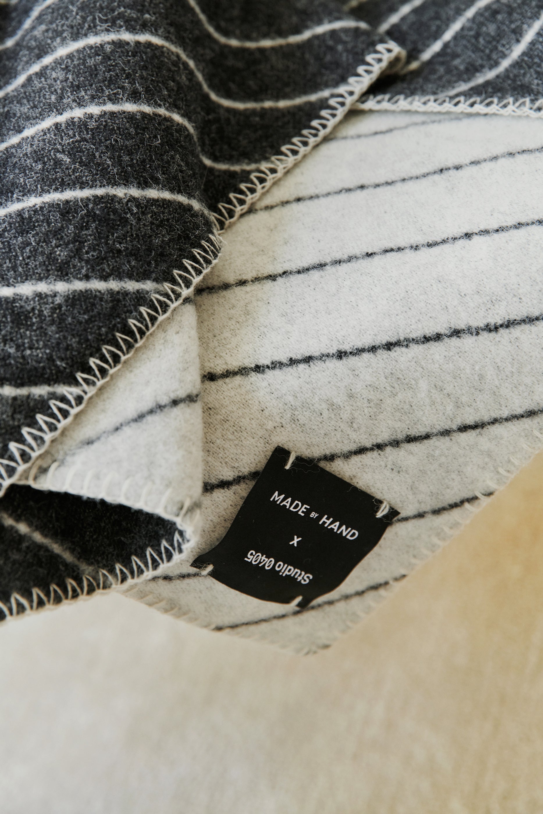 With inspiration drawn from classic pinstripe suits and American color field paintings from the 60’s, Made By Hand’s collection of throws draws on an intentionally classic pattern. The lines of the throw make a small landscape when draped over a couch or chair. Letting the lines meet in the middle of the throw activates the entire surface and turns it into a rich, luminous object rather than just a piece of fabric.