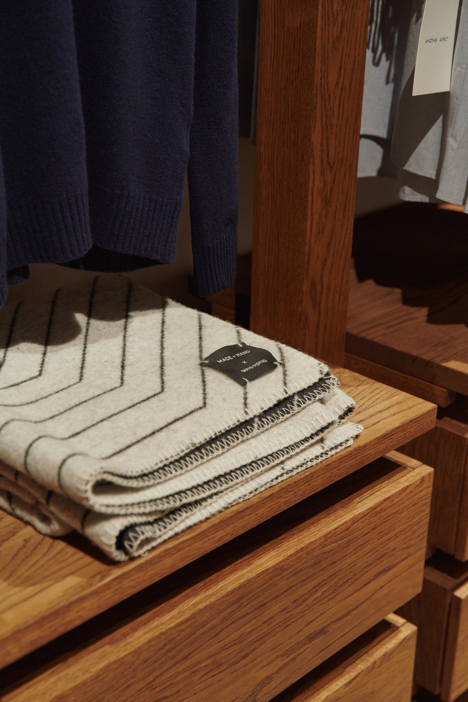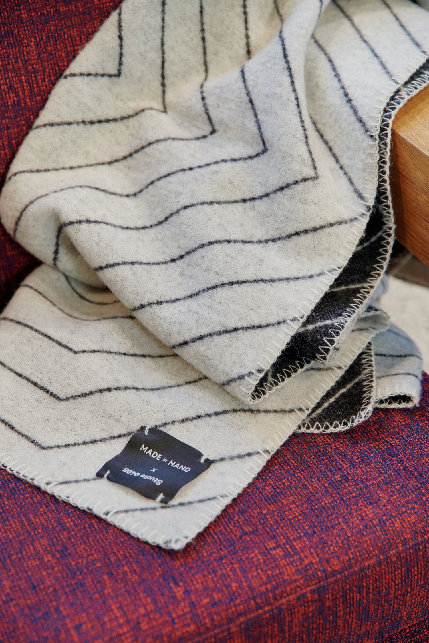 With inspiration drawn from classic pinstripe suits and American color field paintings from the 60’s, Made by Hand’s Pinstripe throws draw on an intentionally classic pattern. The lines of the Pinstripe Throw make a small landscape when draped over a couch or chair. Letting the lines meet in the middle of the throw also activates the entire surface and turns it into a rich, luminous object rather than just a piece of fabric.