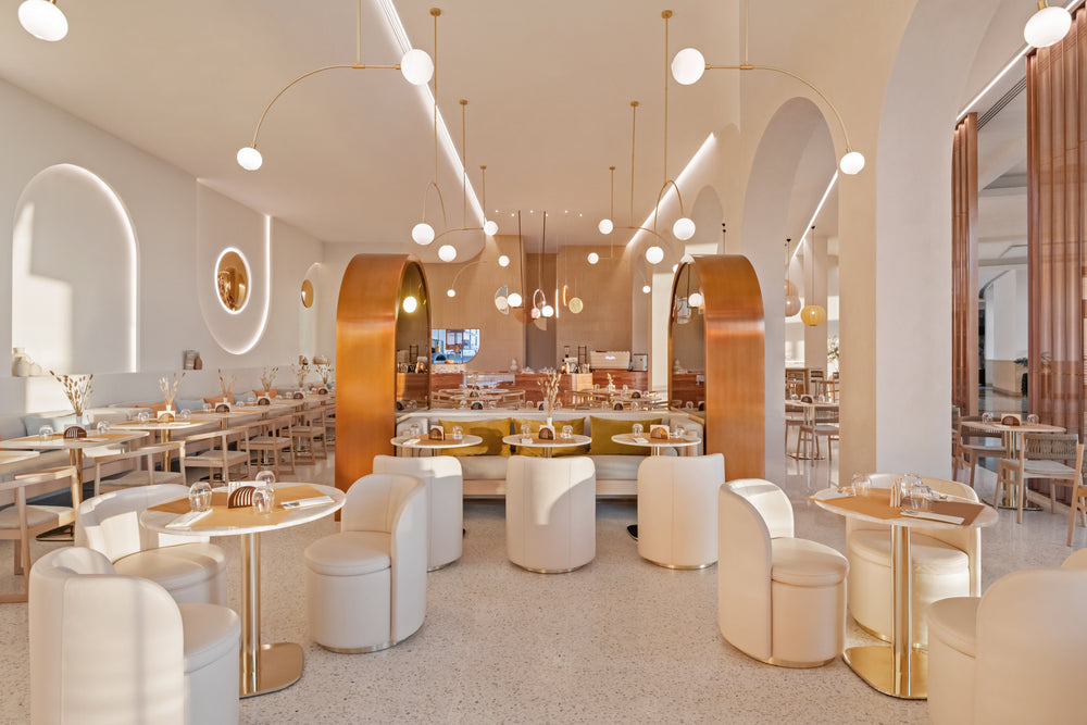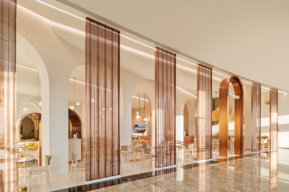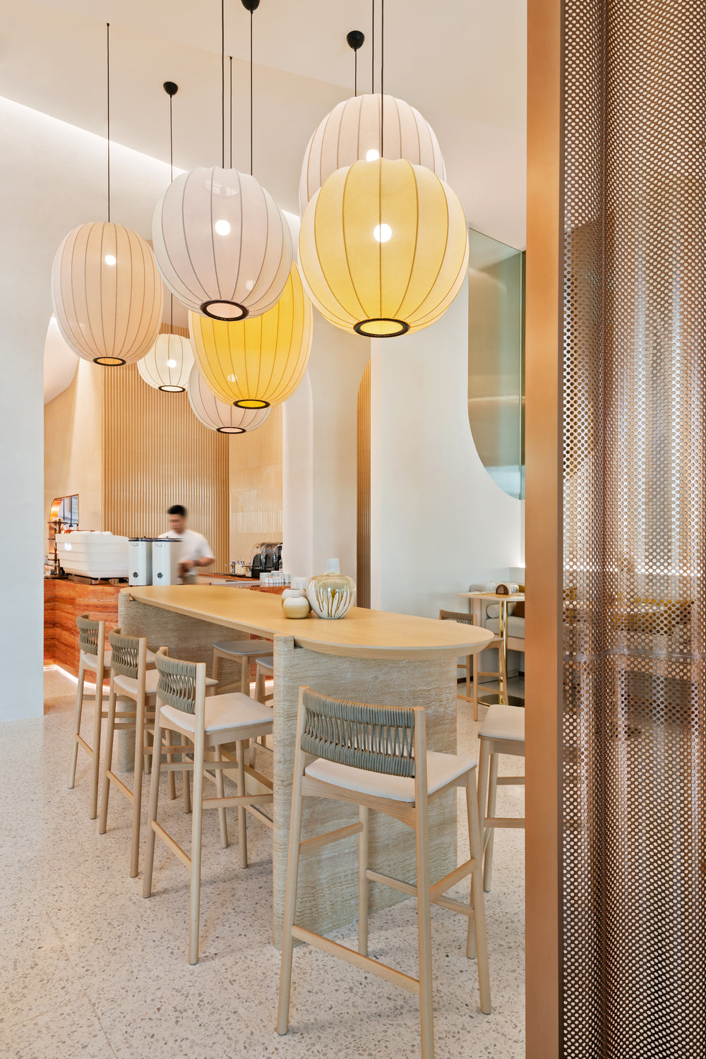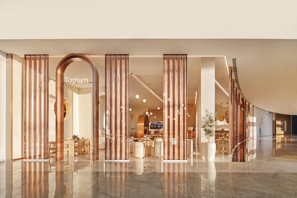 Toplum embodies the essence of Mediterranean serenity, offering guests a dining experience that is both refined and tranquil. Designed by Vera Dieckmann, XO Atelier, the interior concept takes inspiration from regional Mediterranean architecture, reinterpreted with a light, contemporary touch. To complement the warm, inviting ambiance, Made by Hand's Knit-Wit pendants in Sunrise, Pearl White, and Sand Stone were carefully selected