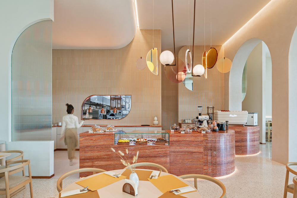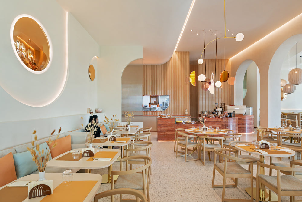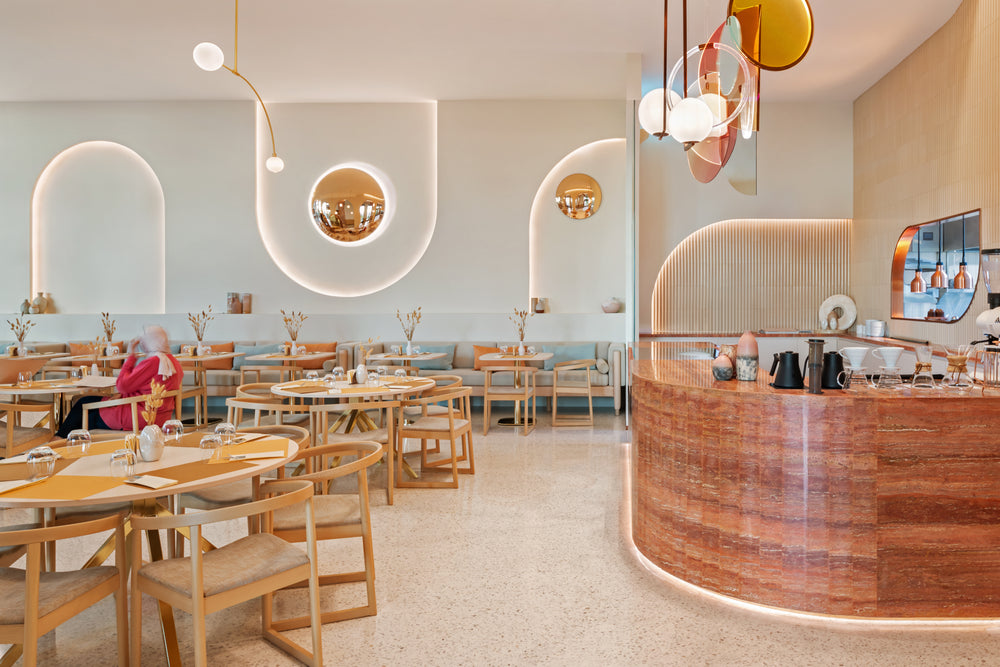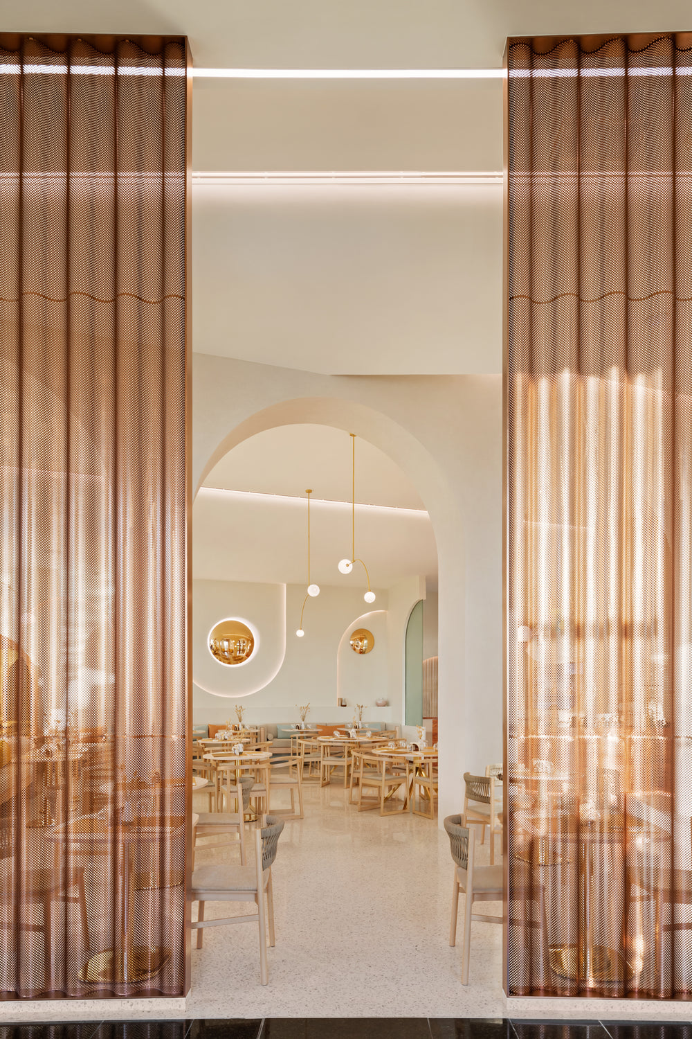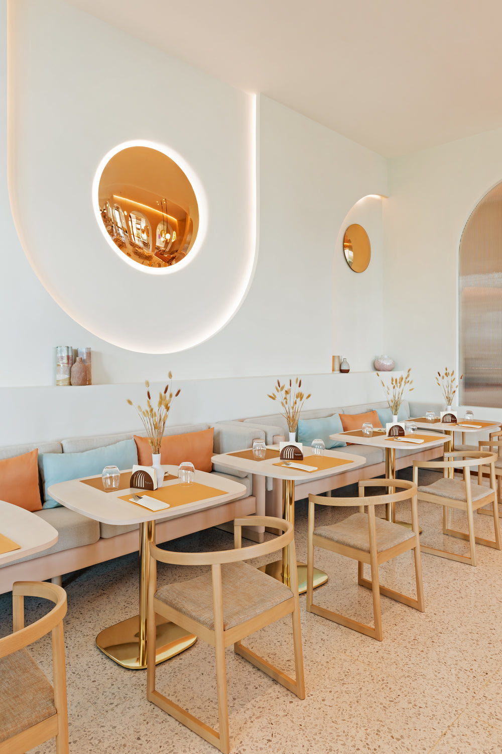 Toplum embodies the essence of Mediterranean serenity, offering guests a dining experience that is both refined and tranquil. Designed by Vera Dieckmann, XO Atelier, the interior concept takes inspiration from regional Mediterranean architecture, reinterpreted with a light, contemporary touch. To complement the warm, inviting ambiance, Made by Hand's Knit-Wit pendants in Sunrise, Pearl White, and Sand Stone were carefully selected
