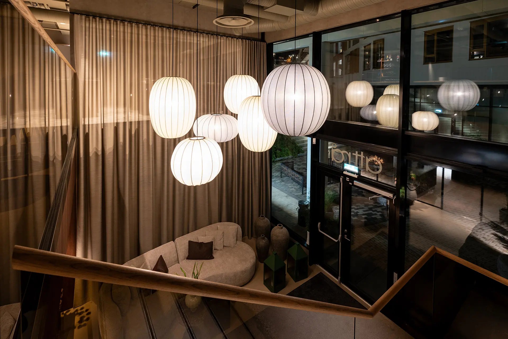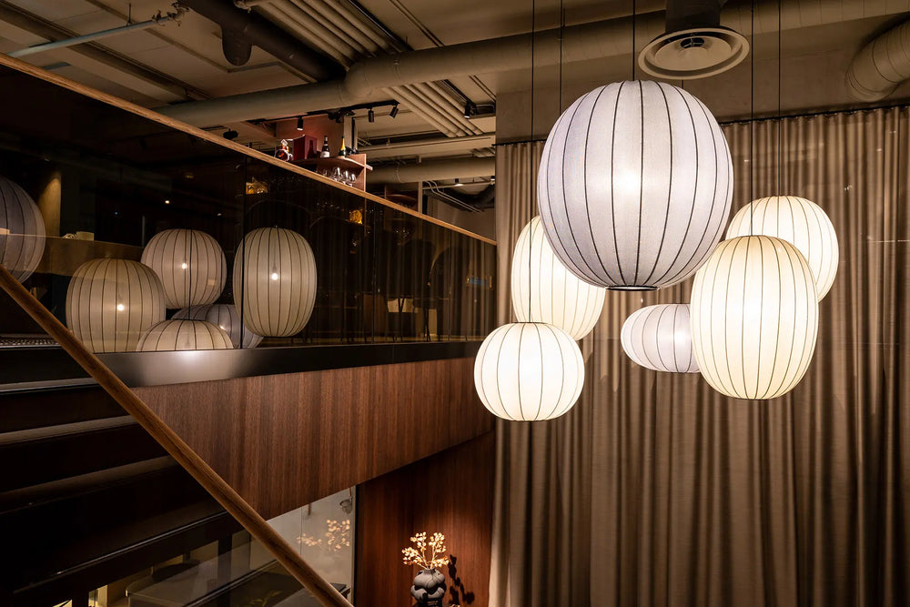 At Restaurant Attrå in Larvik, lighting plays a key role in shaping the atmosphere across its three distinct dining experiences. In collaboration with Norlux, Made by Hand’s Knit-Wit pendants bring warmth and elegance to the space, complementing the restaurant’s refined yet inviting concept. The carefully selected lighting enhances the gourmet experience, making the space feel both intimate and vibrant.