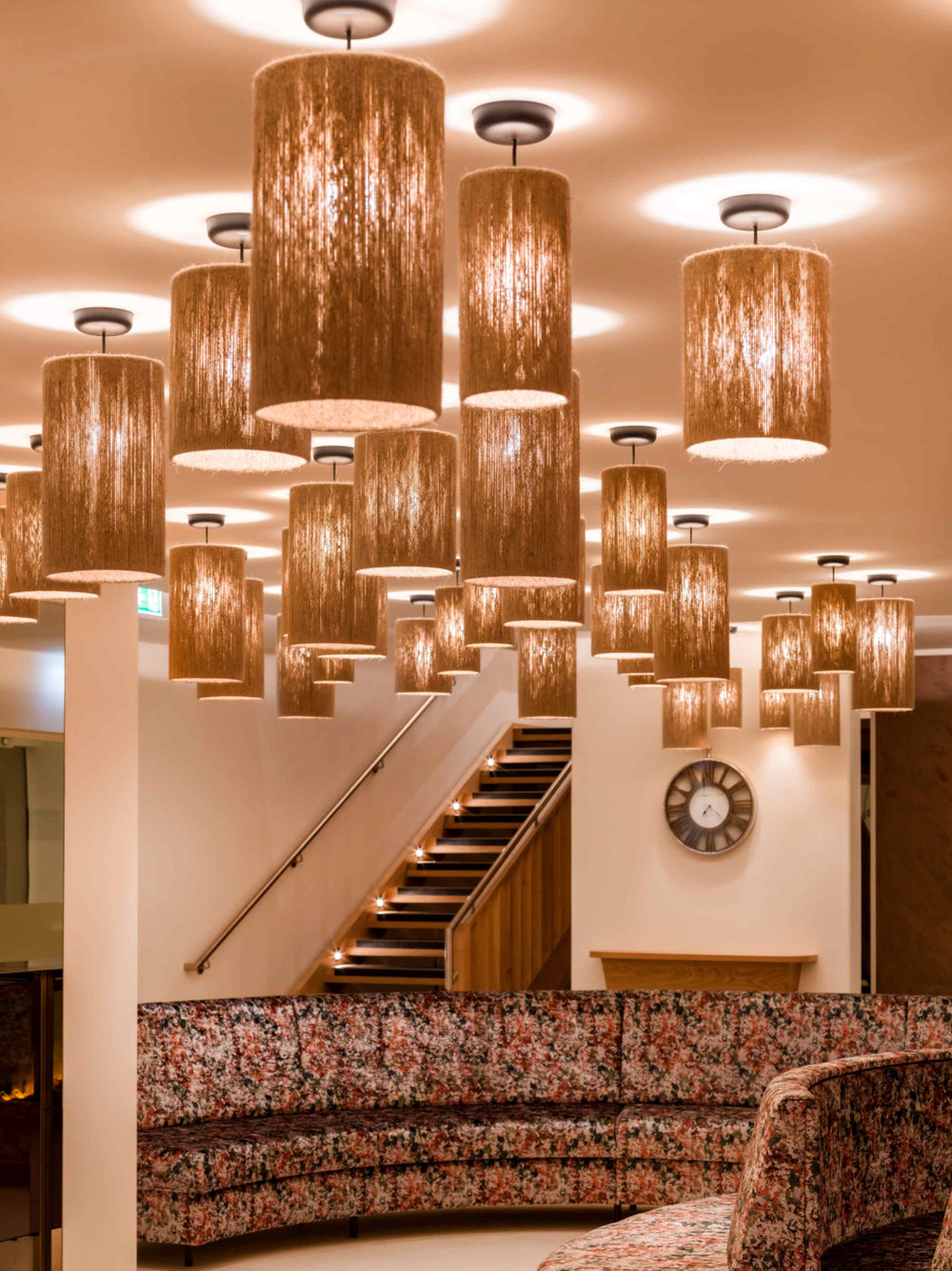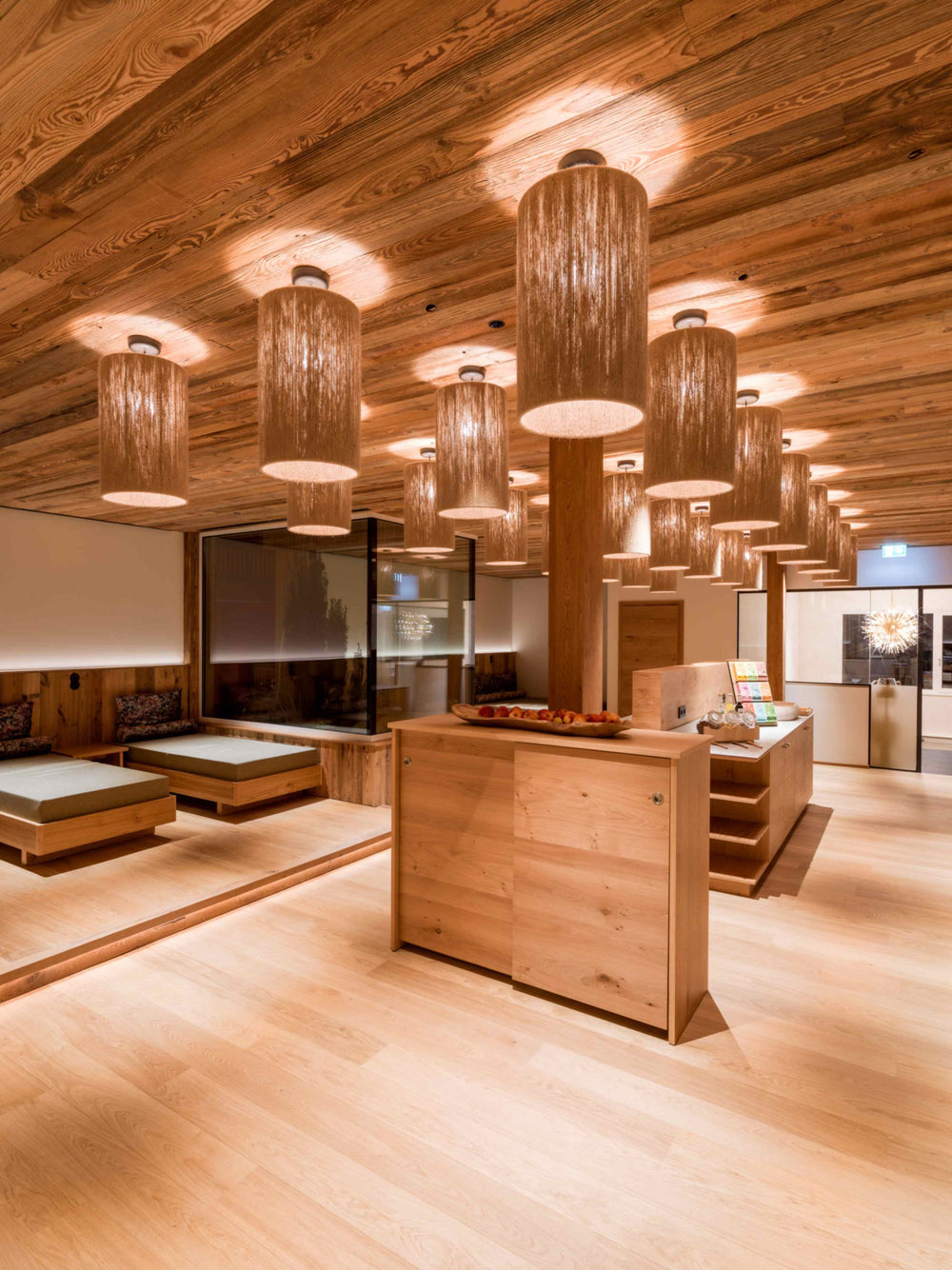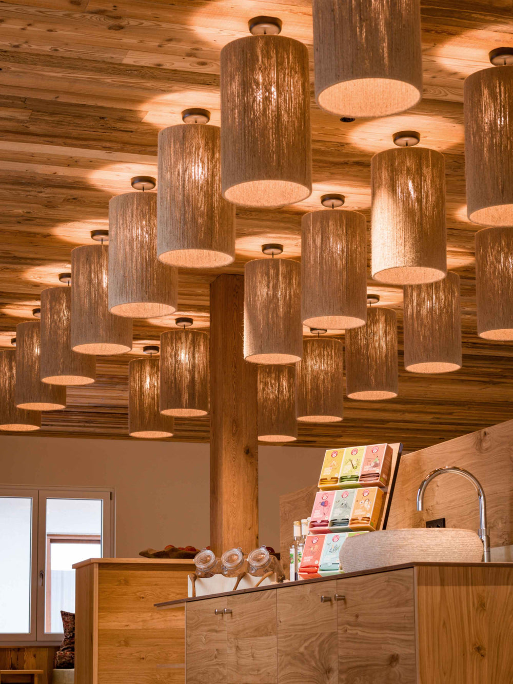 At Hotel Sonnschein’s serene spa, interior designer Alina Plunger of Leinou.Studio has created a tranquil space that blends nature and innovation. The space features Made by Hand’s Ro Pendants, adding a soft, calming light to this peaceful retreat.