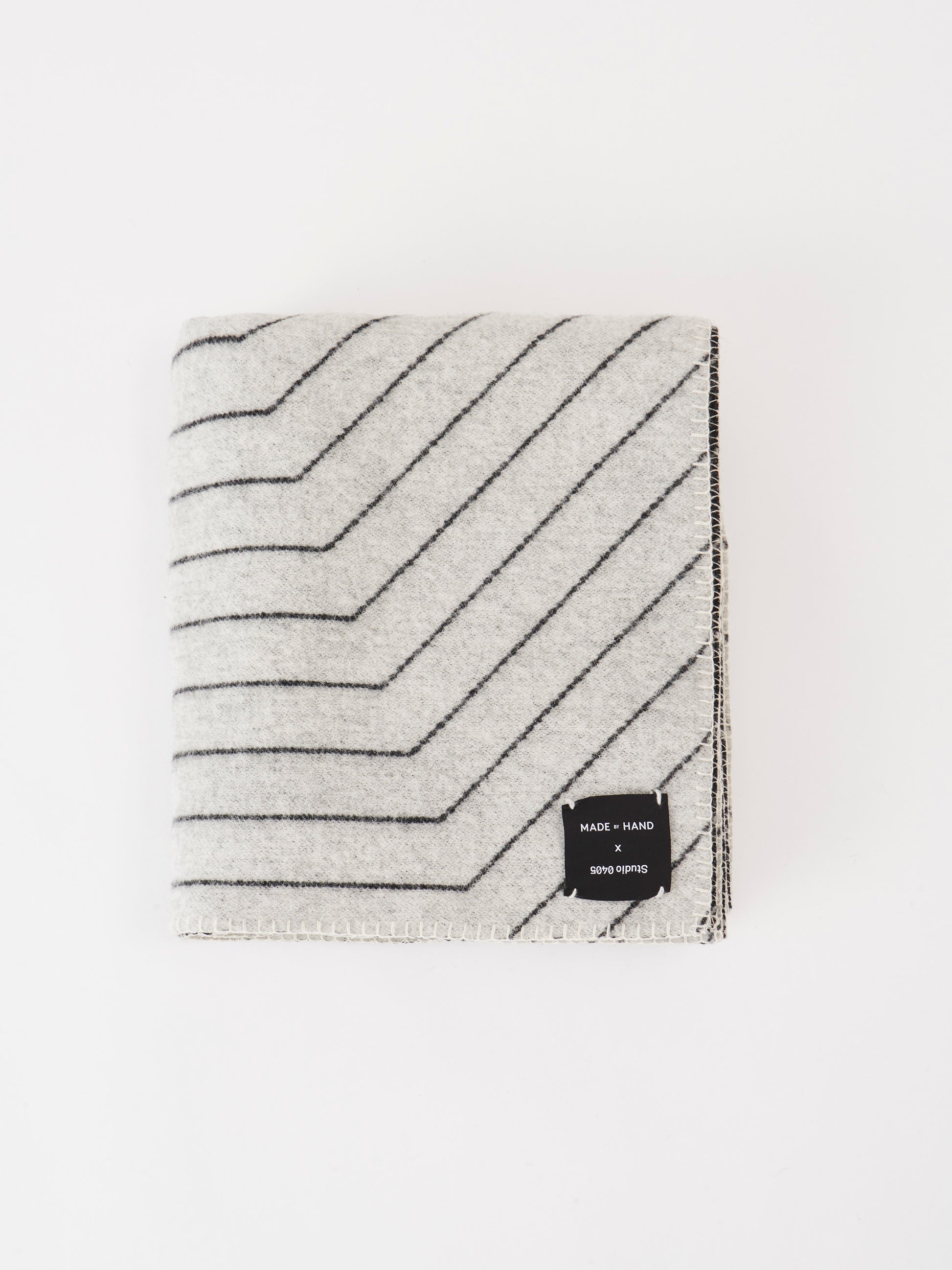 With inspiration drawn from classic pinstripe suits and American color field paintings from the 60’s, Made By Hand’s collection of throws draws on an intentionally classic pattern. The lines of the throw make a small landscape when draped over a couch or chair. Letting the lines meet in the middle of the throw activates the entire surface and turns it into a rich, luminous object rather than just a piece of fabric
