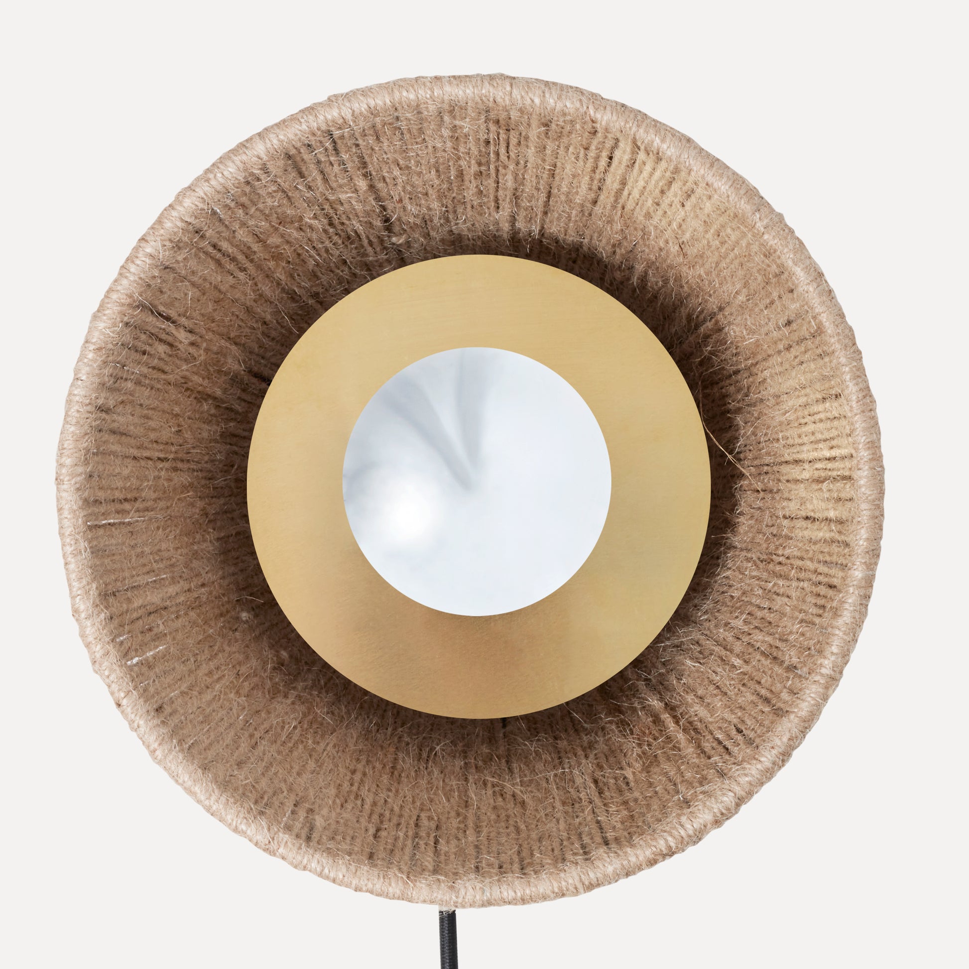 RO lamp draws inspiration from the old craft maker traditions in the 1920s and 1930s where a simple lamp shade was made of ne and yarn usually tied around a wooden stand. The RO lamp shade is made of jute yarn tied around a simple base in line with the old traditions in Denmark. The lamp name RO in Danish refers to the calmness and simple human feeling of well being.